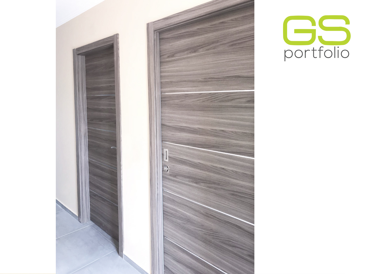 Caixilho UNICO by OPENSPACE, com porta de madeira com revestimento em vinil – OLMO GRIS, com 5 rincões by GS DOORS!