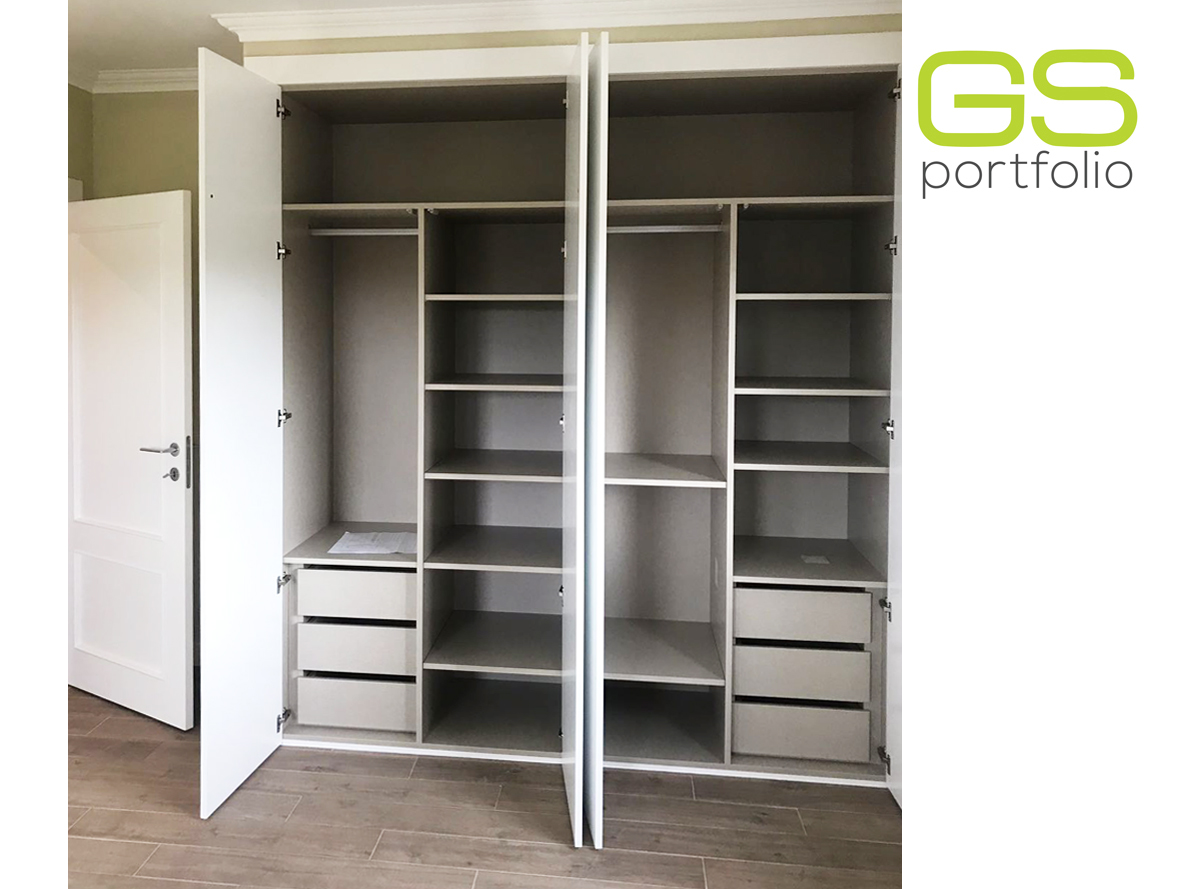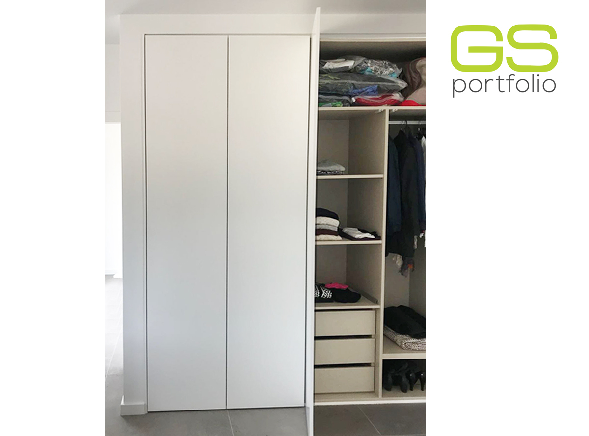 - Roupeiro embutido GS CONCEPT com 4 portas batentes lacado branco mate.