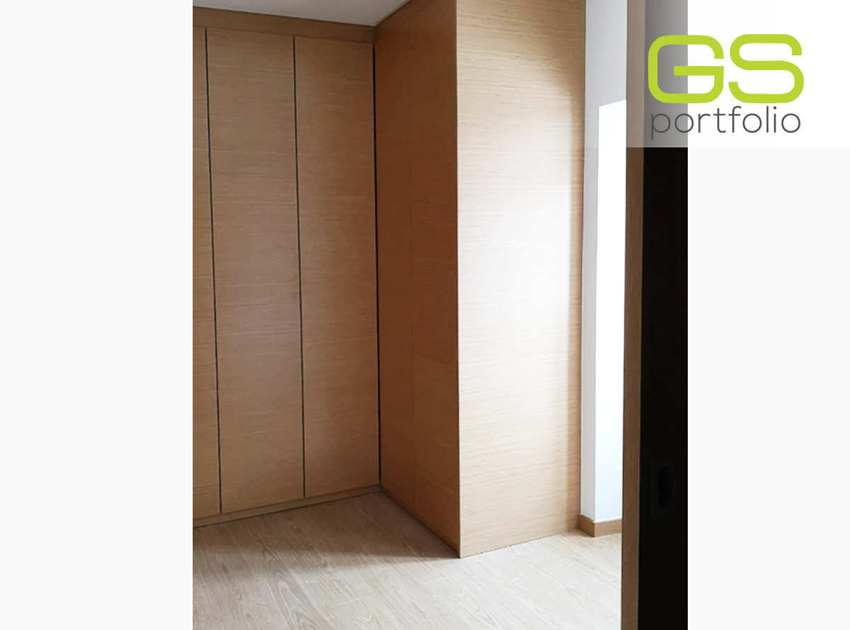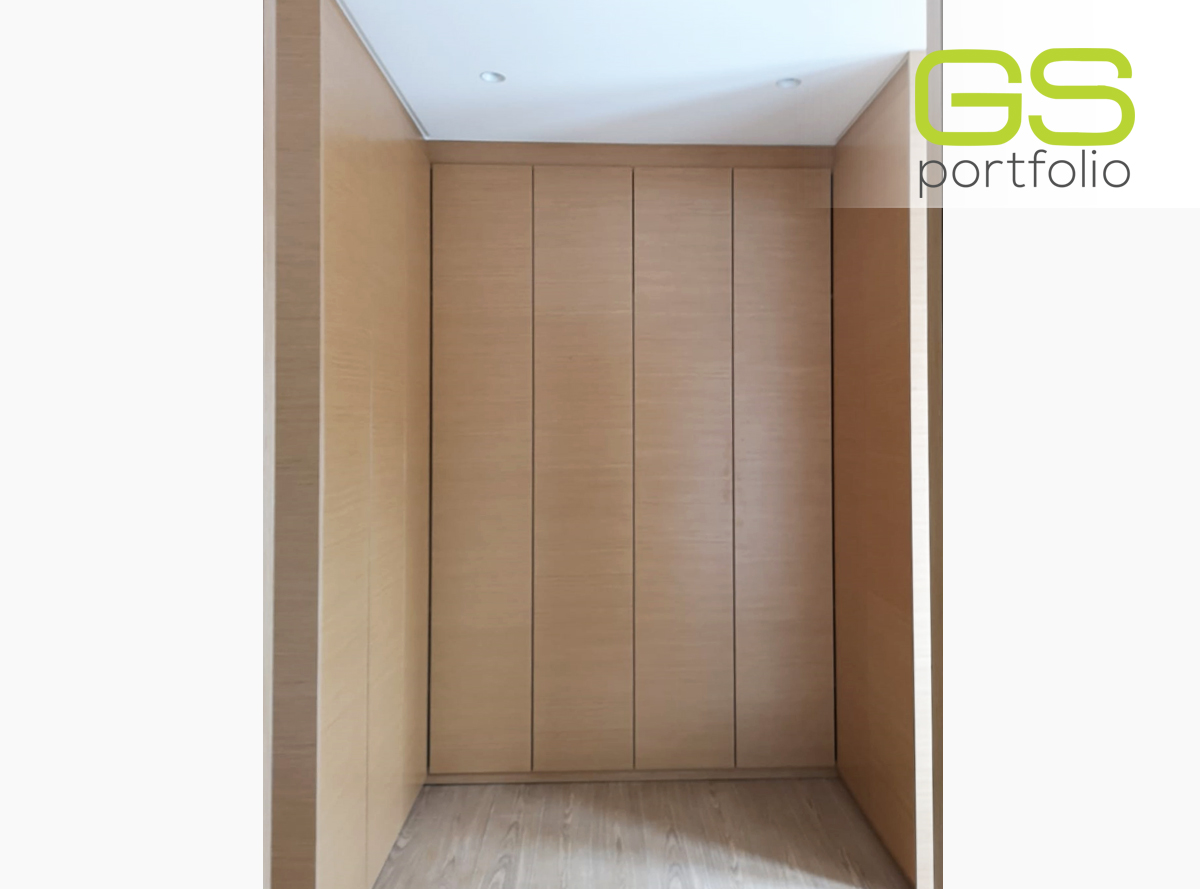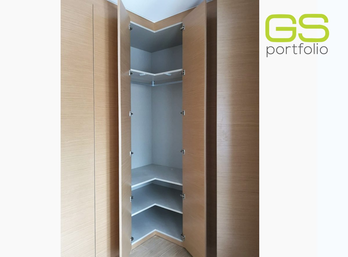 - Roupeiro de canto em U by GS CONCEPT com acabamento em vinil: Carvalho Natural.