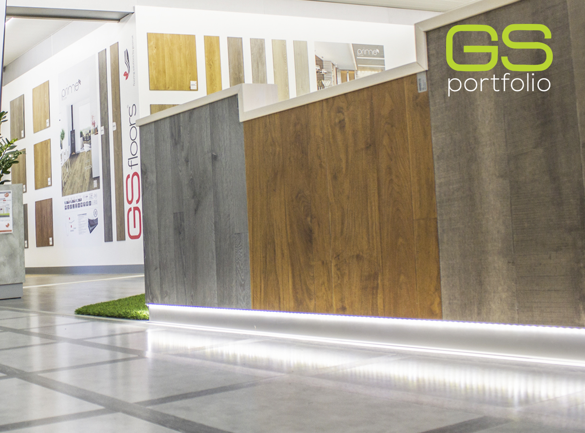 GS FLOORS Wall flush skirting in aluminium 70 x 14mm aluminum with LED tape application.