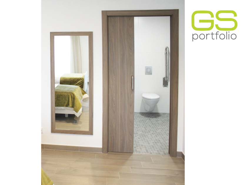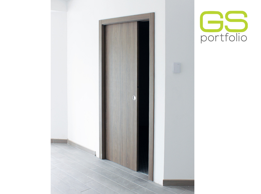 Contre-châssi UNICO avec porte, habillage et chambranle en bois avec couvre feuille VINYL TOUCH - Orme foncé. By OPENSPACE!